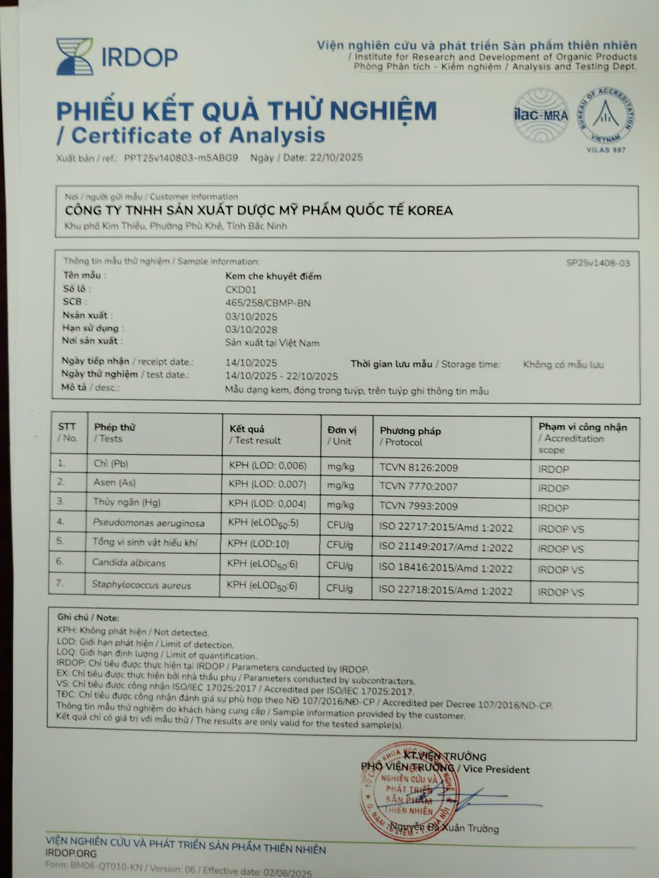 Sản xuất tại: Công Ty TNHH sản xuất dược mỹ phẩm quốc tế KOREA